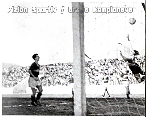 Yes, during the first minutes, our footballers have to stop the incessant rush of Romanian footballers. Then the game goes into a smoother flow. Then, they start to attack and ours and the first half ends 0-0. The second half started with a prelude of attacks by our team. The Romanian goalkeeper Lazareanu, to avoid a danger with a frantic exit, is with the ball outside the penalty area.