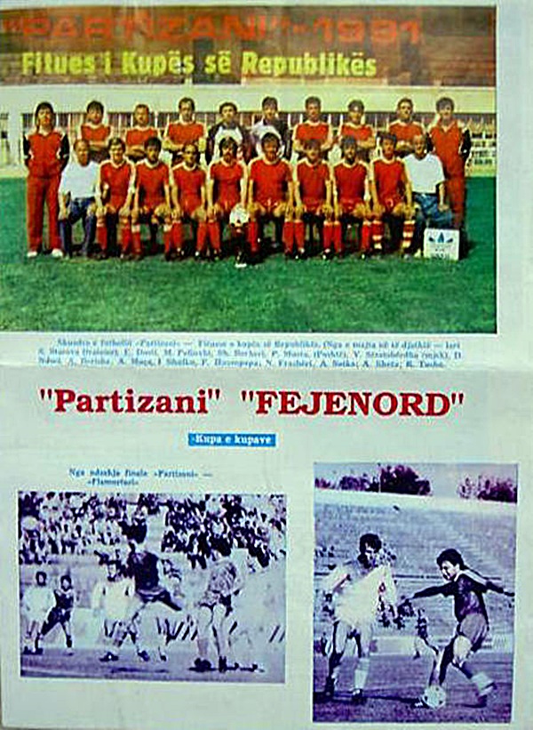 FK Partizan of Albania is the winner of the “Republic Cup” in 1991 and the draw made in the hot August of this year for the Cup Winners’ Cup puts the Albanian team against the Dutch football school, one of the three best teams in this country, “Feyenoord” of Rotterdam, also a well-known team in European rank.
