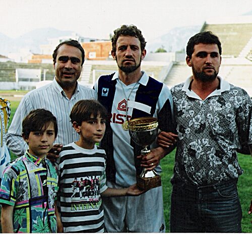 His immense joy, when he first wore the Albanian champion’s medal around his neck in 1982. Meanwhile, two years earlier, in 1980, coach Konçi would call him to the National Team to entrust him with the red and black jersey in a match against Finland. These successes would further enrich the sports biography of this footballer. The chest of the strong boy, year after year, would be adorned with numerous medals of trophies won.